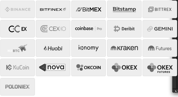 Compatibility: Aside Binance, Bifinex and BiMEX, the platform provides compatibility for 17 other top list exchanges including Bitstamp, Bittrex, CCEx, CEX.io, Coinbase Pro, Deribit, Gemini, HitBTC, Huobi, ionomy, Kraken, Kucoin, Nova Exchange, OKCoin, OKEx, OKEx Futures and Poloniex.