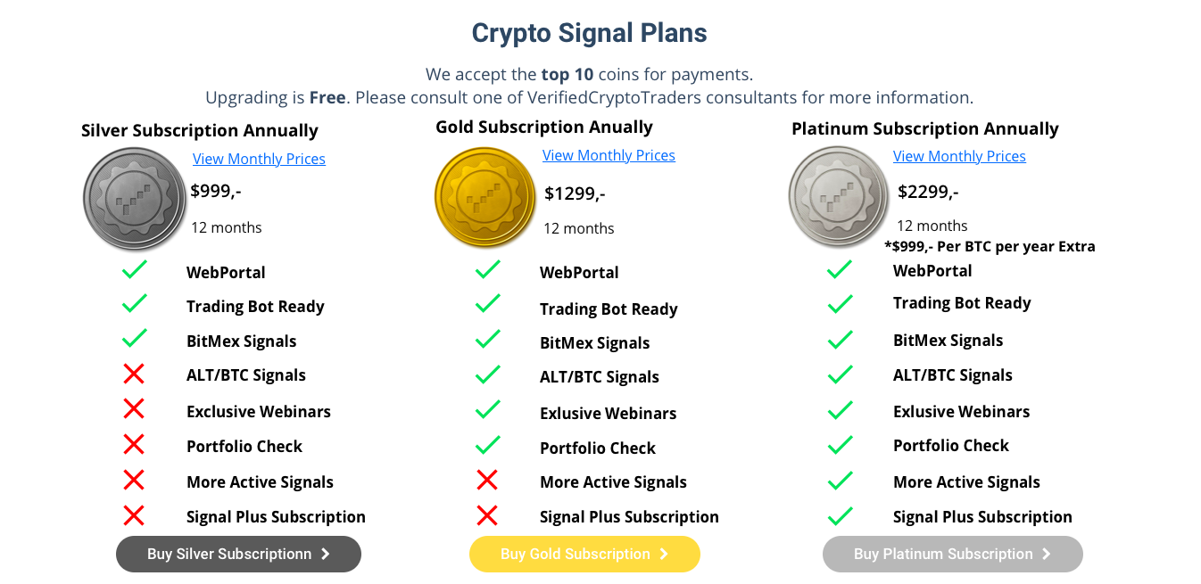 When it comes to the offered services, Verified Crypto Traders proves it is one of the best providers of cryptocurrency signals.